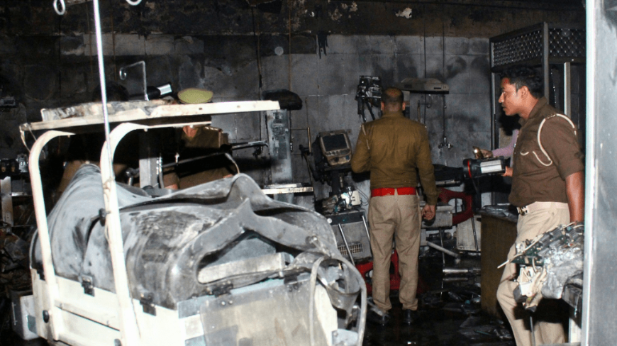 ▲印度北方邦瑪哈拉妮拉克希米拜醫學院初生嬰ICU病房大火,11嬰遇難。 美聯社