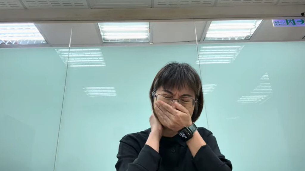 ▲謝宜容在影片中頻頻癟嘴、皺眉,講到激動處甚至捂嘴哽咽。(謝宜容提供)