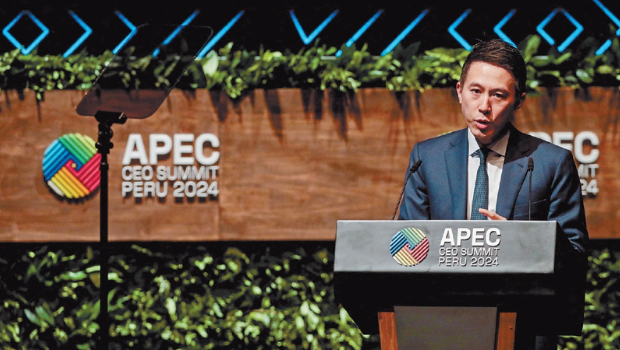 ▲消息透露,TikTok行政總裁周受資曾主動接觸科技大亨馬斯克;圖為周于早前出席峰會發表演說。路透社