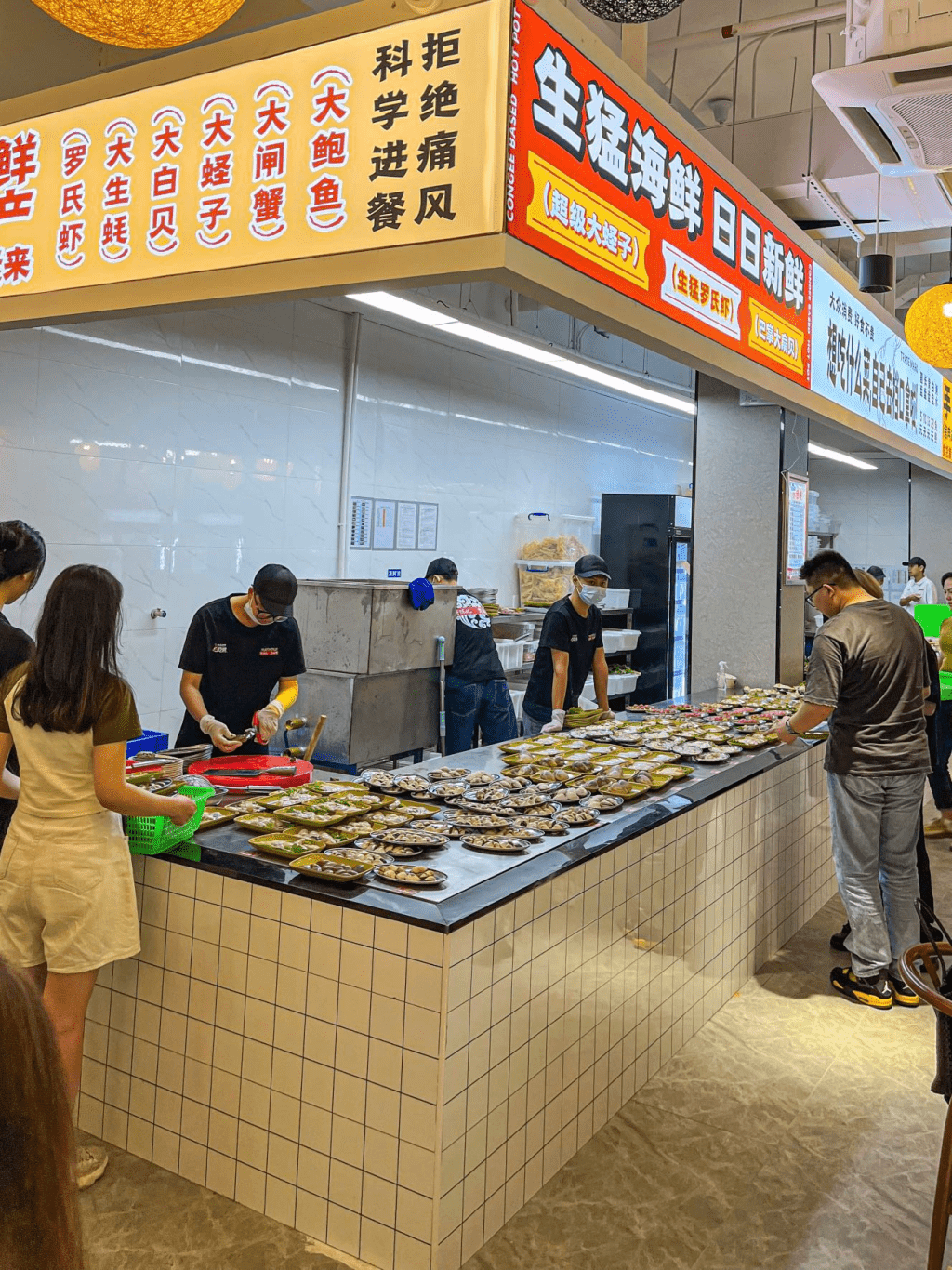 來自廣州的粵陳記,由煲仔粥(生滾粥)起家,近年轉型為粥底海鮮火鍋店,采用一人一鍋的形式,配以各種自助海鮮配料,大受歡迎。最近其深圳首店終于開業,食客可以在吧臺自選海鮮、肉葷、蔬菜配料。而配料按碟款劃分價格,最平的圓盤只要¥5、最貴的也不過¥28一碟,已經可以吃到生蝦、生蠔、扇貝、飽魚、扇貝、蟶子等,海鮮料生猛新鮮。且粥底免費任添,性價比極高。