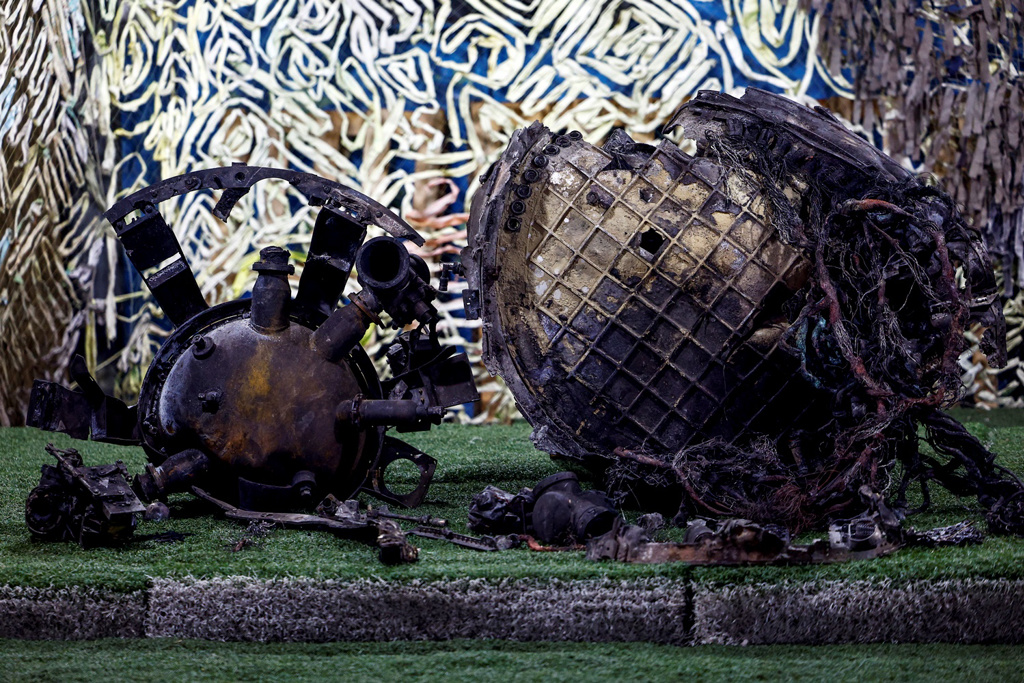 ▲烏克蘭24日首度公開俄羅斯新型中程彈道導彈“榛果樹”(Oreshnik)殘骸。(路透社)