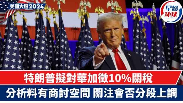 美國總統當選人特朗普于旗下社交媒體發文,稱將對中國商品加征10%關稅。有意見認為時機來得較預期早。有大行則認為,關稅問題仍有討價還價的空間。亦有機構關注,會否分階段再加關稅。