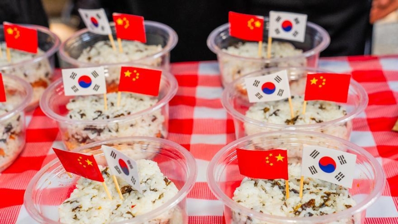 The food court was one of the festival's highlights, where international students set up booths showcasing their culinary traditions. The air was filled with the irresistible aromas of Turkish lahmacun, French canelés paired with wine, Venezuelan arepas, and Malaysian nasi lemak. These delectable dishes delighted both students and faculty who gathered to savor the international flavors. The Tajikistan booth, offering traditional oshi palav and the signature dish qurutob, attracted a lot of attention.The American booth, featuring hamburgers and chocolate chip cookies, was also a big hit. Wu, a student from the Business English Department, shared her excitement: "The American students were incredibly friendly, and the food was fantastic!"