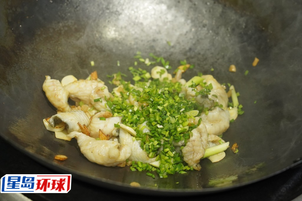 4. 魚肉下鑊后大火快炒,利用高溫把肉汁封鎖。