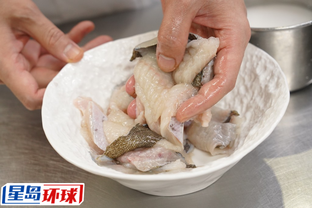 3. 起出魚肉時,盡量切掉魚骨上的魚肉,魚骨炸起來更香脆。
