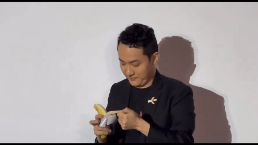 孫宇晨在香港舉辦活動,吃下以天價投得的香蕉。 他早前以620萬美元投下用膠帶將香蕉黏在墻上的藝術作品《喜劇演員》(Comedian)。 他吃下香蕉后表示:“比別的香蕉好吃多了”。 孫宇晨說,這件藝術品就像加密貨幣,意義來自于概念,并說迷因、加密貨幣和藝術之間的橋梁非常有意義。