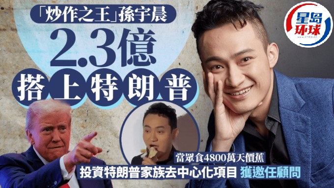 中國企業家、加密貨幣系統“波場TRON”的創辦人孫宇晨(Justin Sun)29日吃下以超過4800萬港元投得的香蕉。 孫宇晨向來有《話題王子》、《炒作之王》之稱,2019年曾投得“股神”巴菲特午餐后失約。 這個“幣圈紅人”近日又以3000萬美元投資特朗普家族推出的去中心化金融項目,成為其最大投資者,并獲邀擔任顧問,讓他有機會與特朗普及其家族合作。