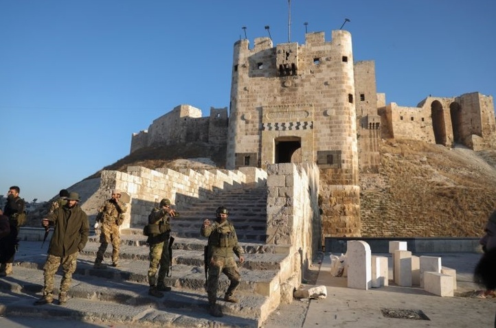 ▲當地時間11月30日,反對派武裝人員在敘利亞阿勒頗老城附近用手機拍照。圖源:外媒