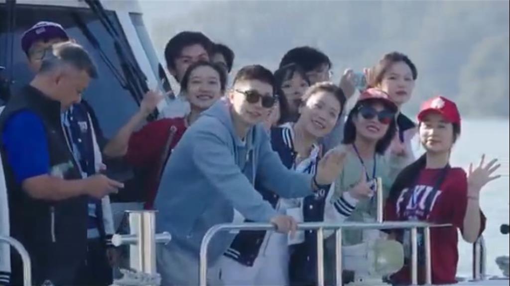 ▲大陸高校生受馬英九基金會邀請,其中還有奧運乒乓球金牌選手馬龍在內等訪問團一行,今日抵達南投日月潭參觀、環潭。(照片由馬英九基金會提供)