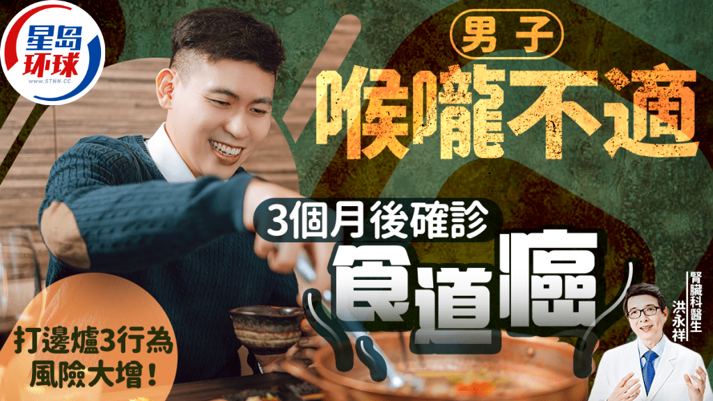 腎臟科醫生洪永祥在《健康好生活》節目分享病例指,該名60歲男子本身患有高血壓和高血脂問題,須每3個月定期復診。某次復診,他提到最近在吞咽時喉嚨一直出現異物感,即使喝水也不能紓緩。尤其是進食越干燥或越硬的食物,像是卡著喉嚨的感覺就越明顯,導致近來只能吃較、較稀的食物。
