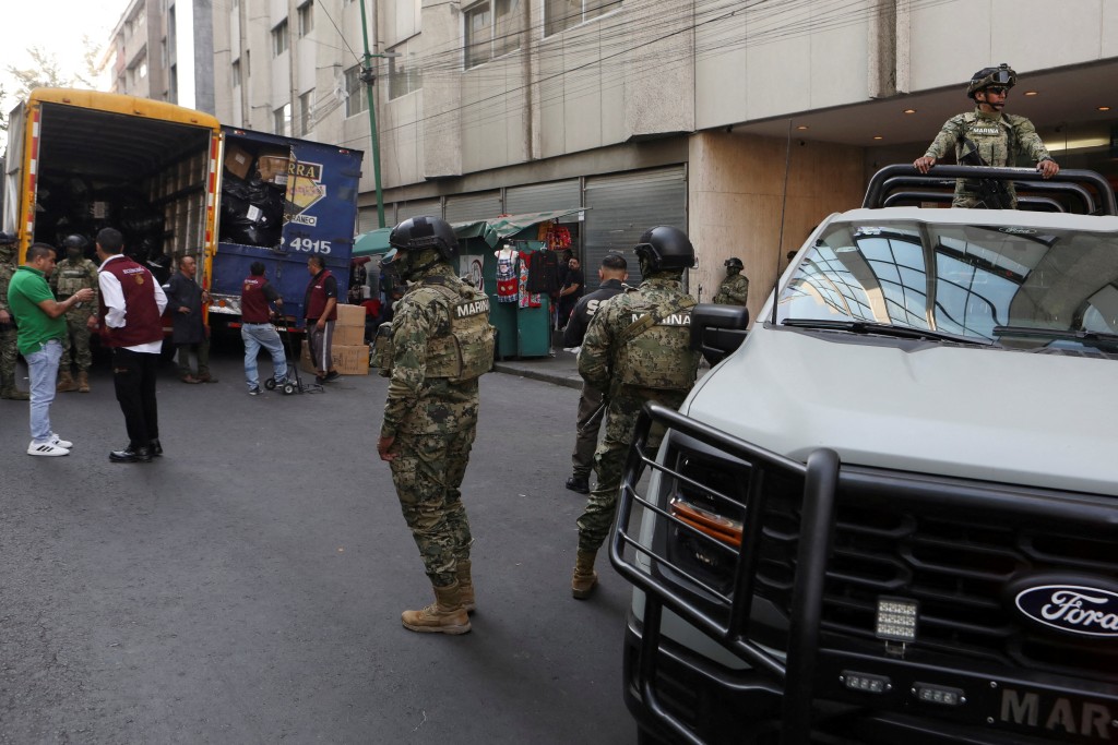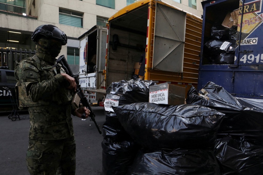 ▲墨西哥海軍人員監督檢獲貨物。(路透社)
