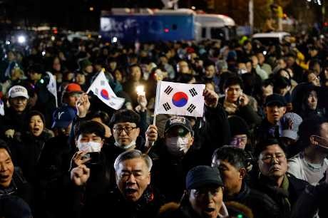 即使國會深夜通過要求解除戒嚴令決議,但群眾仍拒絕回家。國會一側有人高喊: “拘捕尹錫悅! 拘捕尹錫悅! ”還有人試圖翻牆進入國會大樓內。