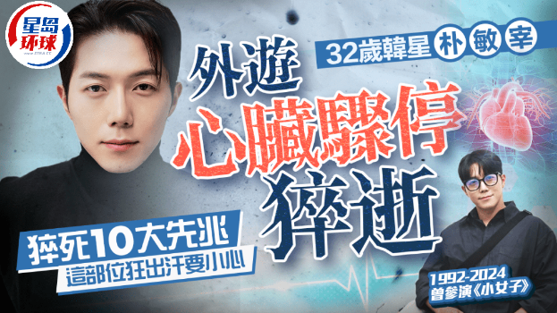 韓國男星樸敏宰(???)曾參演《小女子》等人氣韓劇,前途原本無可限量,但他上周五(11月29日)在中國旅行期間,因心臟驟停猝死,終年32歲。猝死看似猝不及防,但有醫生表示,身體若發生10大警號,有機會是猝死先兆!