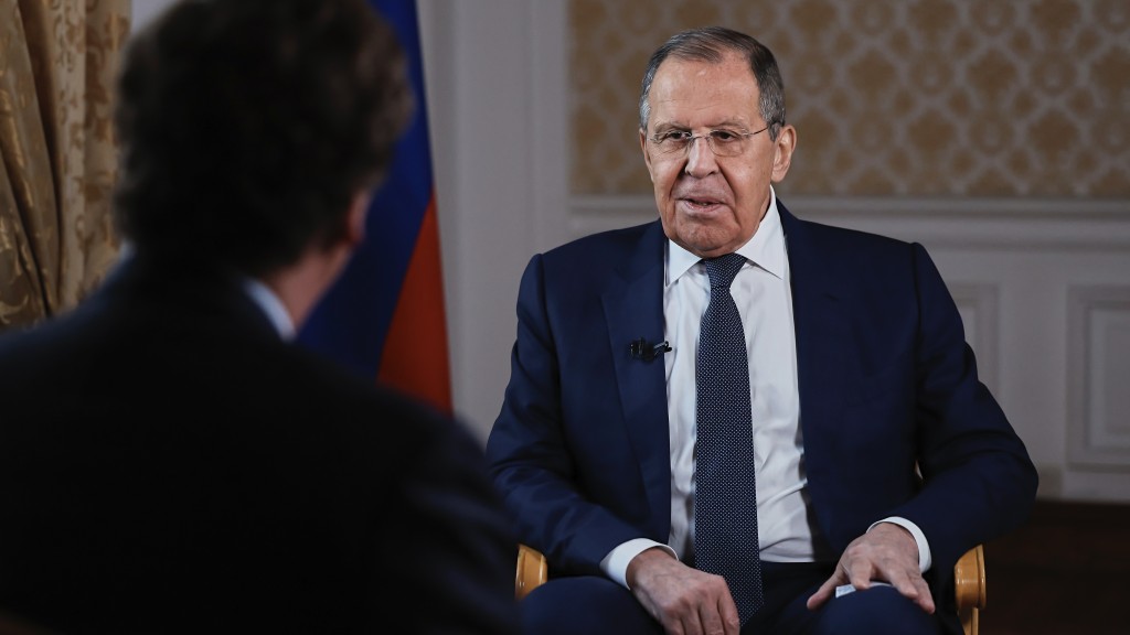 ▲拉夫羅夫12月3日接受前霍士新聞主持人卡爾森訪問。 美聯社