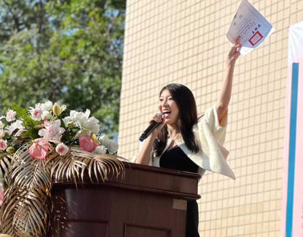 李明璇分享,幻想過好幾次這樣的畫面,但覺得要是真有可能,那也是滿頭白發之后的事情,沒想到竟然成真了!先前接到母校校長的電話時真的嚇了一跳,沒想過會有這么一天,自己可以獲得“杰出校友”的殊榮,當時還開玩笑地自嘲“沒有選上立委也可以拿獎狀嗎?”