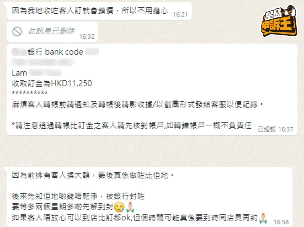 ▲平臺A要求客人預付一半金額落訂,并解釋原因。