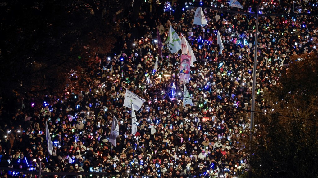 ▲上周南韓民眾集會支持彈劾尹錫悅,迫爆國會外的大道。 路透社