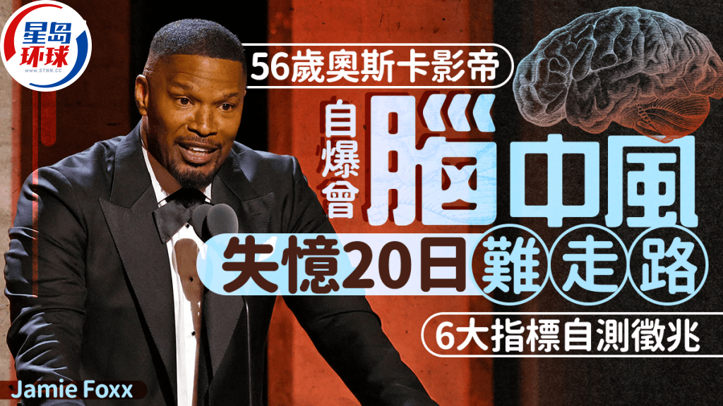 56歲奧斯卡影帝Jamie Foxx于2023年4月曾因不明并發癥入院,曾傳出命危消息。 近日,他在電視節目才透露,自己當時因腦中風入院,甚至因此失憶20日,一度無法行走。 中風防不勝防? 有專家指出,有6大指標可自測中風征兆。