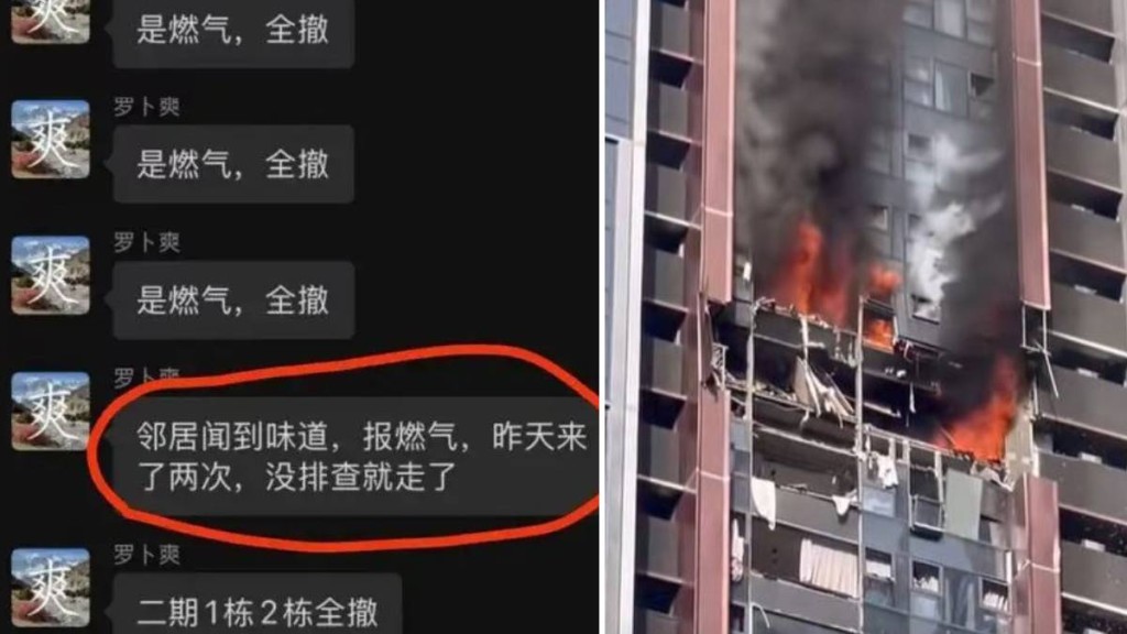 傳媒“奧一新聞”報道,網絡流傳出涉事小區的群組記錄,不少業主提及事發前一天涉事樓棟疑似出現燃氣泄漏情況。