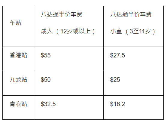 由12月13日至2025年2月9日期間,3至11歲的小童只需持有有效的小童八達通,于機場快線車站出/入閘,即自動享有乘車優惠,免費乘搭機場快線往返市區車站,包括香港、九龍、青衣站及機場站。