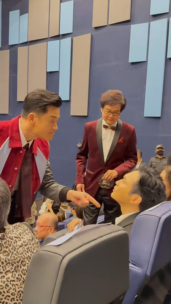 張智霖目撃整個過程,并望著呂良偉,未幾呂良偉就手指指指著張智霖,更作狀想掌摑張智霖,原來呂良偉只時輕輕撫摸張智霖面頰,只是樣子裝作兇狠。