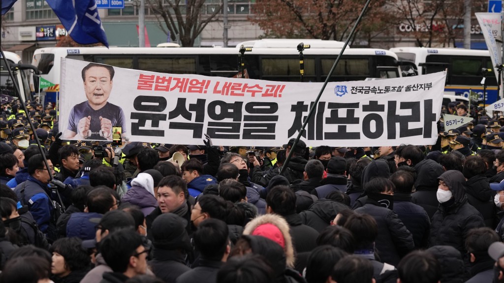 ▲要求彈劾尹錫悅的韓國民眾游行到首爾漢南洞的總統官邸入口。 美聯社