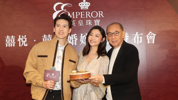 衛詩雅(Michelle)和關智斌(Kenny)昨日(17日)以代言人身份出席英皇珠寶《囍悅?囍愛》婚嫁活動發布會。