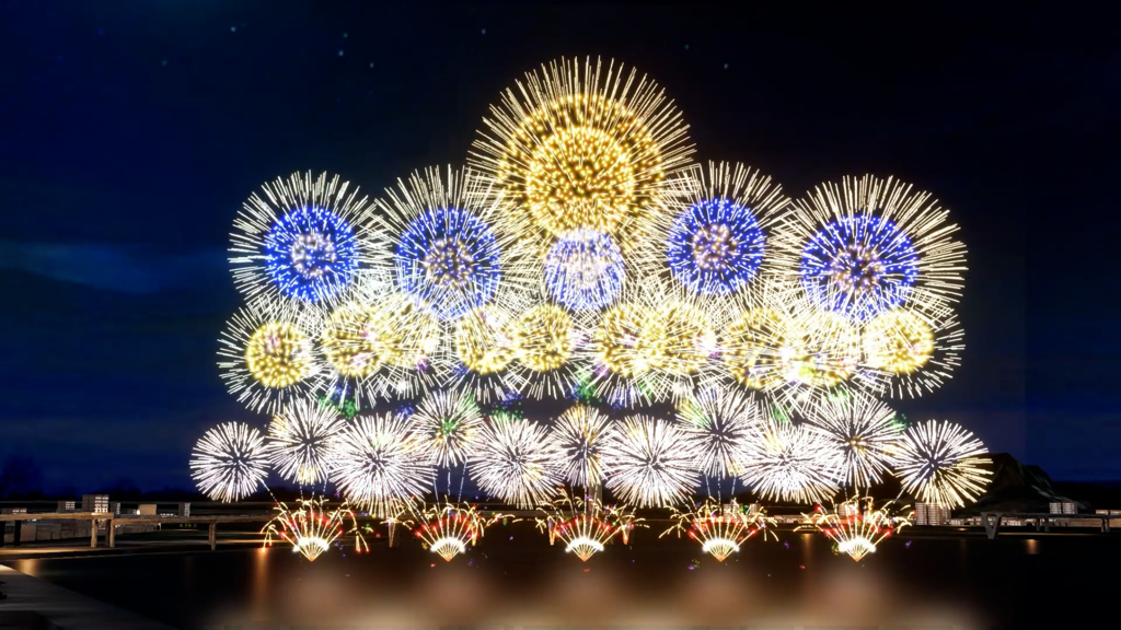 今年的煙火秀以黃、藍、綠、紅四大色系展開煙火四大篇章,融合全新創作音樂,展現新北市的自然美景與人文情懷。施放前的倒數30秒,更結合全臺獨家的“雷射浮空倒數”與淡江大橋光雕秀,在燈光與色彩流轉間,渲染跨年氛圍,帶來視覺與聽覺的雙重饗宴。精彩亮點包括百發連發的跨河開幕秀、首創雙尺玉與水中爆破特效、以及以彩虹墻和五色牡丹煙火打造的視覺盛宴,燃放面寬達一公里,氣勢磅礡。
