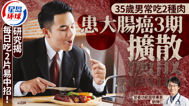 【大腸癌/癌癥/致癌食物】“食肉獸”注意!一名35歲男子確診大腸癌3期并擴散至肝臟,醫生指出,該男子常吃2種肉,引發癌癥。有研究發現,這類肉如果每日吃2片,會大大增加患癌風險。