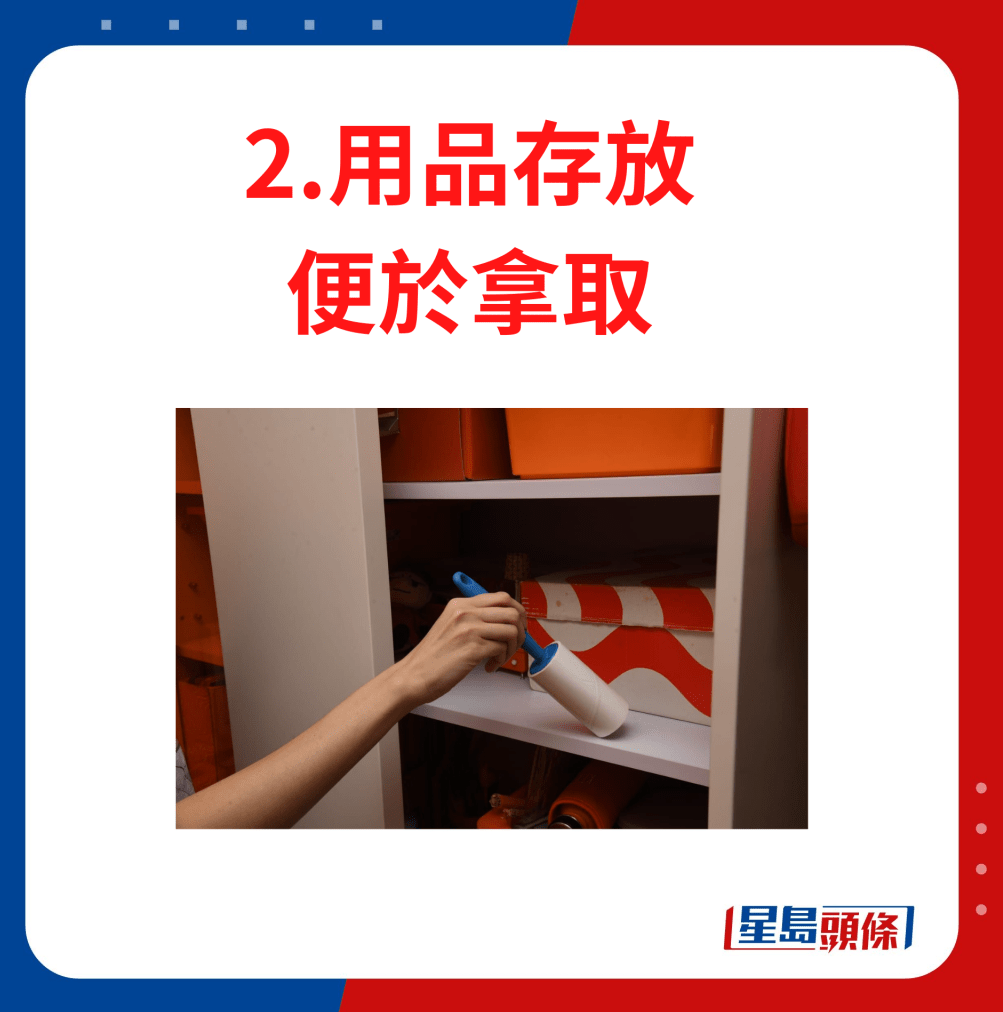 常用的物品應該放在容易取得的位置,例如衣服除塵轆,可以放在柜趟門的側面或開門即可直接拿取的地方,這樣在需要時只需打開一部分趟門即可快速拿到物品,避免柜門大開的麻煩,同時防止貓咪趁機進入不該進去的地方,例如衣柜。