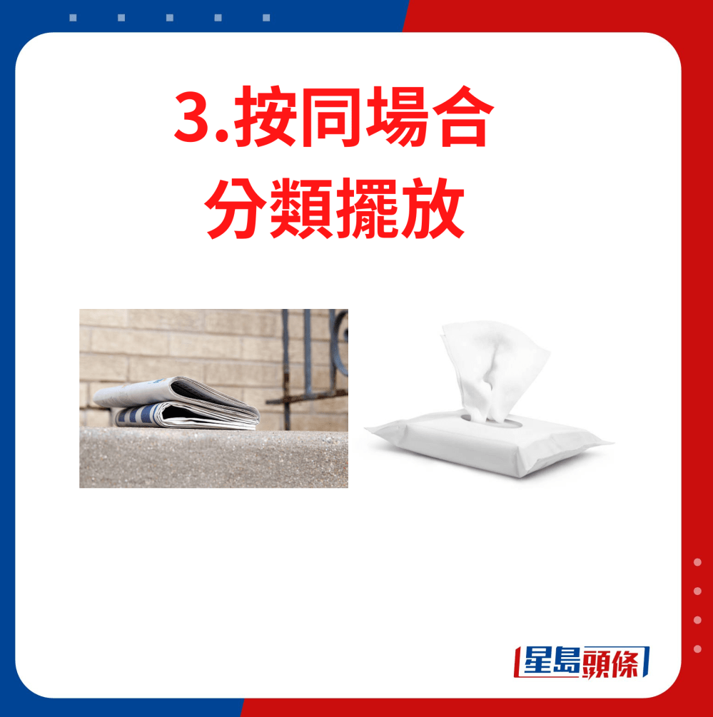 將相關物品收納在一起,不僅能提高效率,還能減少找尋時間。例如,出門遛狗時需要的物品如濕紙巾、膠袋、報紙等可以放在一個專門的外出袋內;而貓咪的清潔用品如膠袋、貓砂剷也可以集中放置在貓砂盆附近,隨手便可拿到。