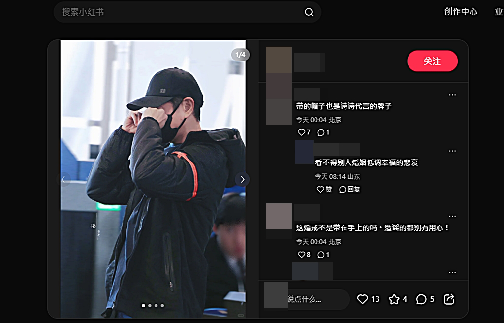 對此,昨有網友在上海拍到吳奇隆現身機場,笑說:“被吳奇隆水靈靈的大眼睛盯得心跳加速中”,照片中可見吳奇隆看來有點疲憊,狂揉眼睛,發現有人在拍,便直視鏡頭。網友回應:“也是不容易天天被說,唉,有苦說不出”、“戴的帽子也是詩詩代言的牌子”、“看不得別人婚姻低調幸福的悲哀”、“這婚戒不是戴在手上的嗎。 造謠的都別有用心、為了流量什么都敢說。