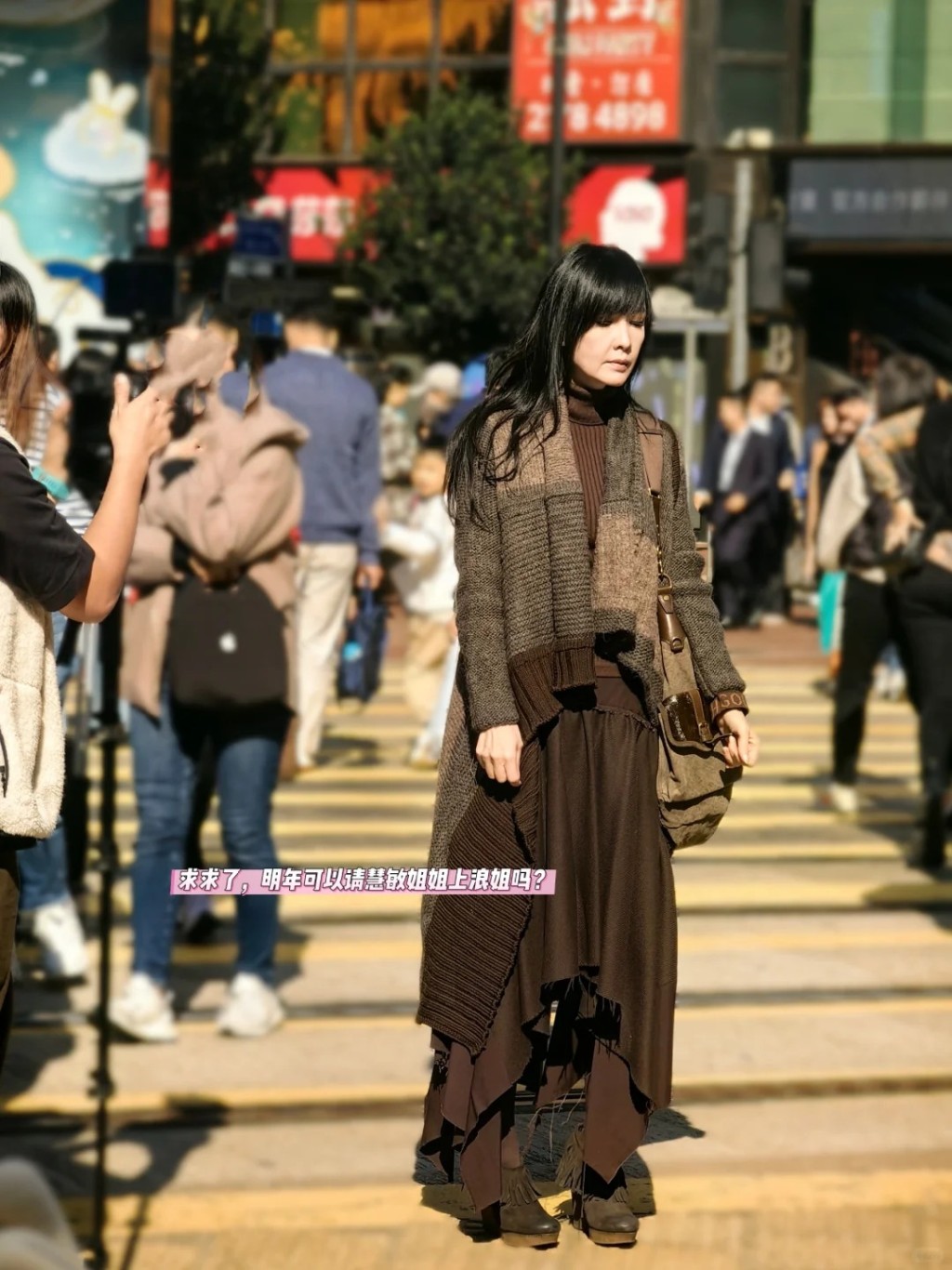這網民在小紅書上分享了兩張在銅鑼灣街頭巧遇周慧敏的照片,大贊周慧敏本人皮膚超好:“應該是在拍MV之類的。不打擾工作,一路嘟囔著:好美 好美 好美…趕緊溜走?!闭掌锌梢钥吹脚活^烏黑長發的周慧敏身穿高領棕色毛衣襯同色半身長裙,及由深棕、淺棕和卡其色相間的條紋外套,整體造型非常有日系風格的感覺。周慧敏站在馬路中央,她白皙的肌膚在日光照射下顯得更為透亮,不愧是天生麗質的自然美女神!