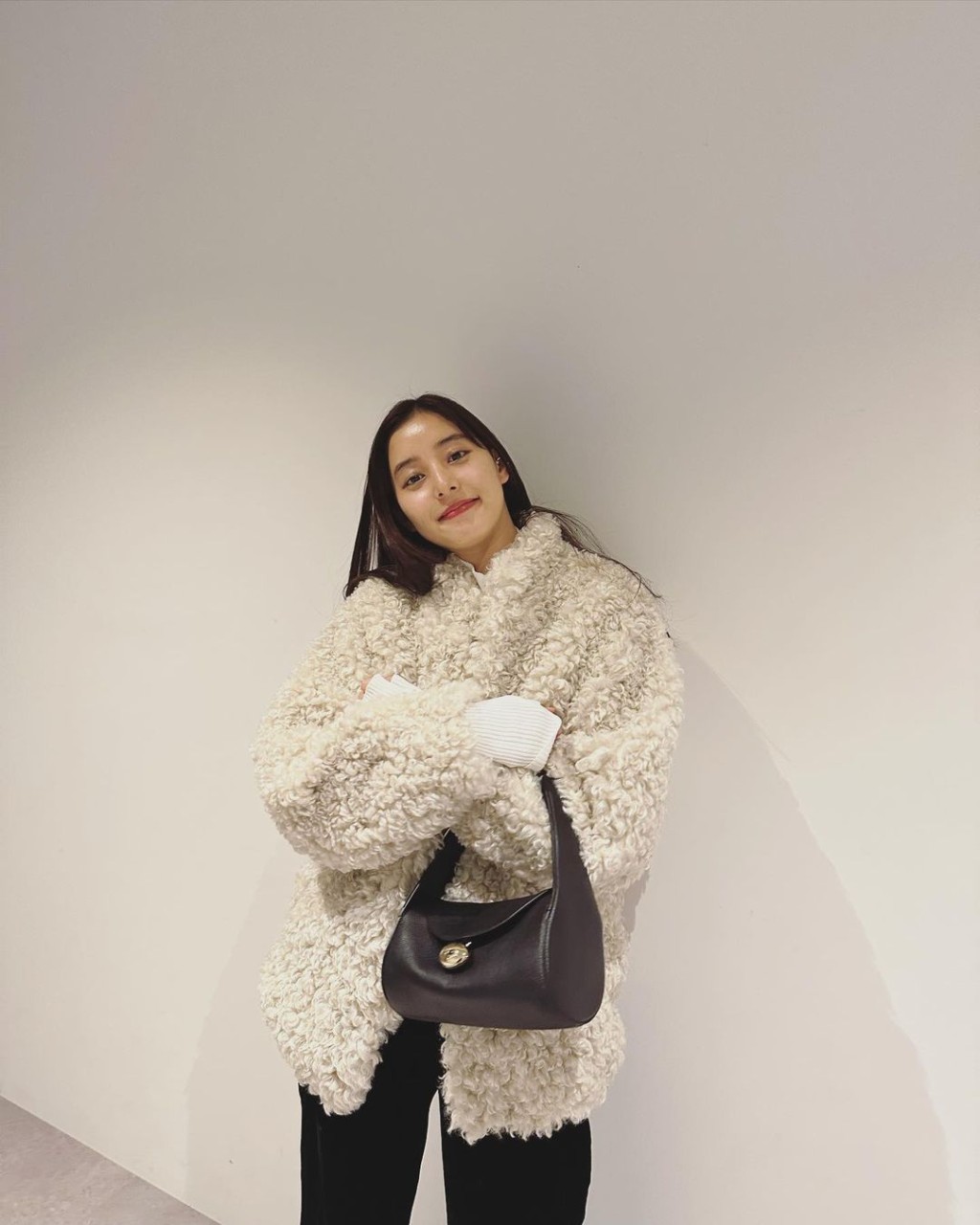▲日本女星新木優子以毛毛大衣及長褲的冬日造型,配搭品牌的手袋,倍添優雅,亦豐富造型。