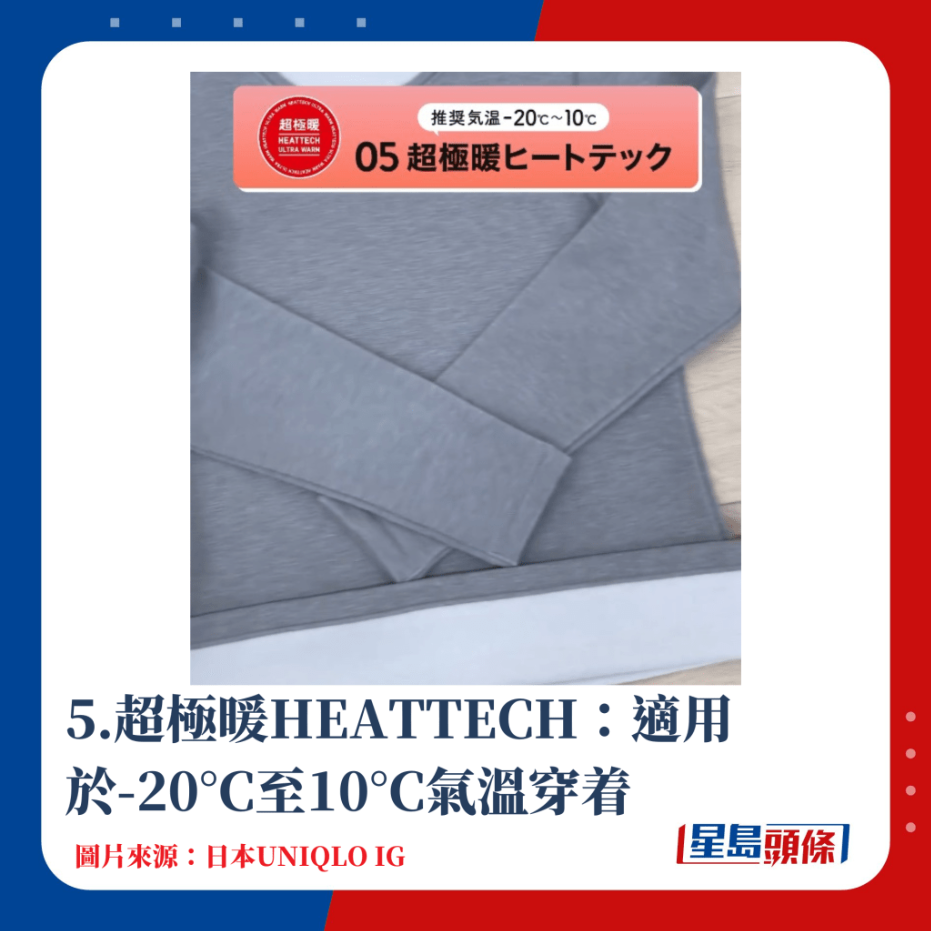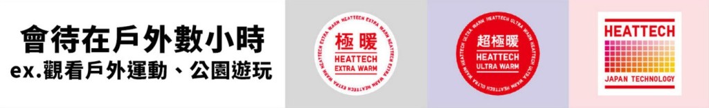 ▲如果大家需要長時間于戶外工作或露營的情況,初冬及入冬時期可選用極暖版HEATTECH,初春時可換回極暖版。