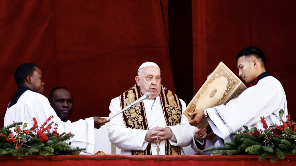 羅馬天主教教宗方濟各于周三圣誕節演講《致全城與全球》中,呼吁世界各地“武器噤聲”實現和平,提及俄烏、蘇丹等地,同時譴責加沙“極其嚴重”的人道主義局勢。