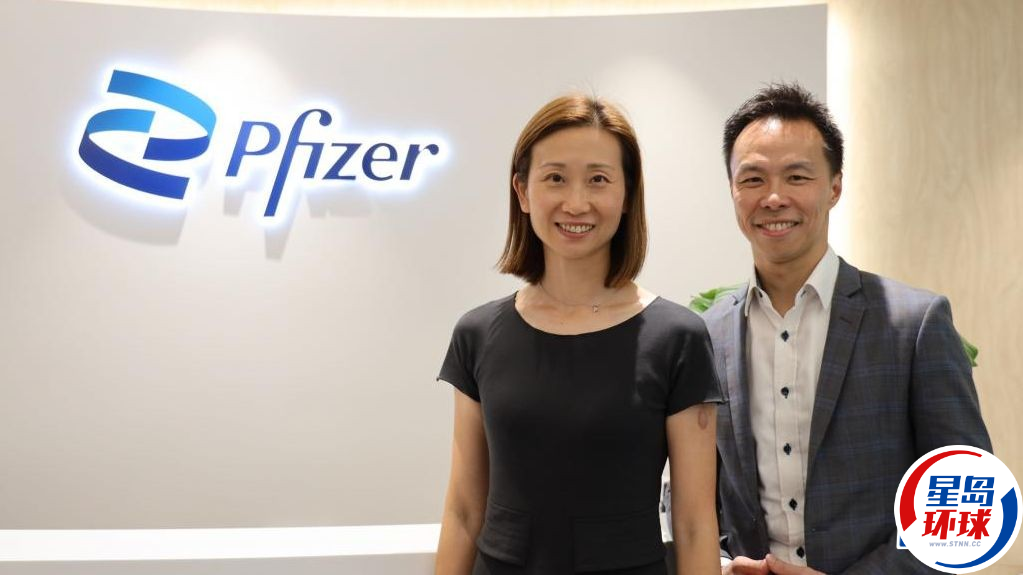 ▲輝瑞香港及澳門區法規科學主管洪凱欣(左)、免疫及炎癥、腫瘤科業務負責人兼營運負責人陳敏剛(右)分享輝瑞香港的歷程。
