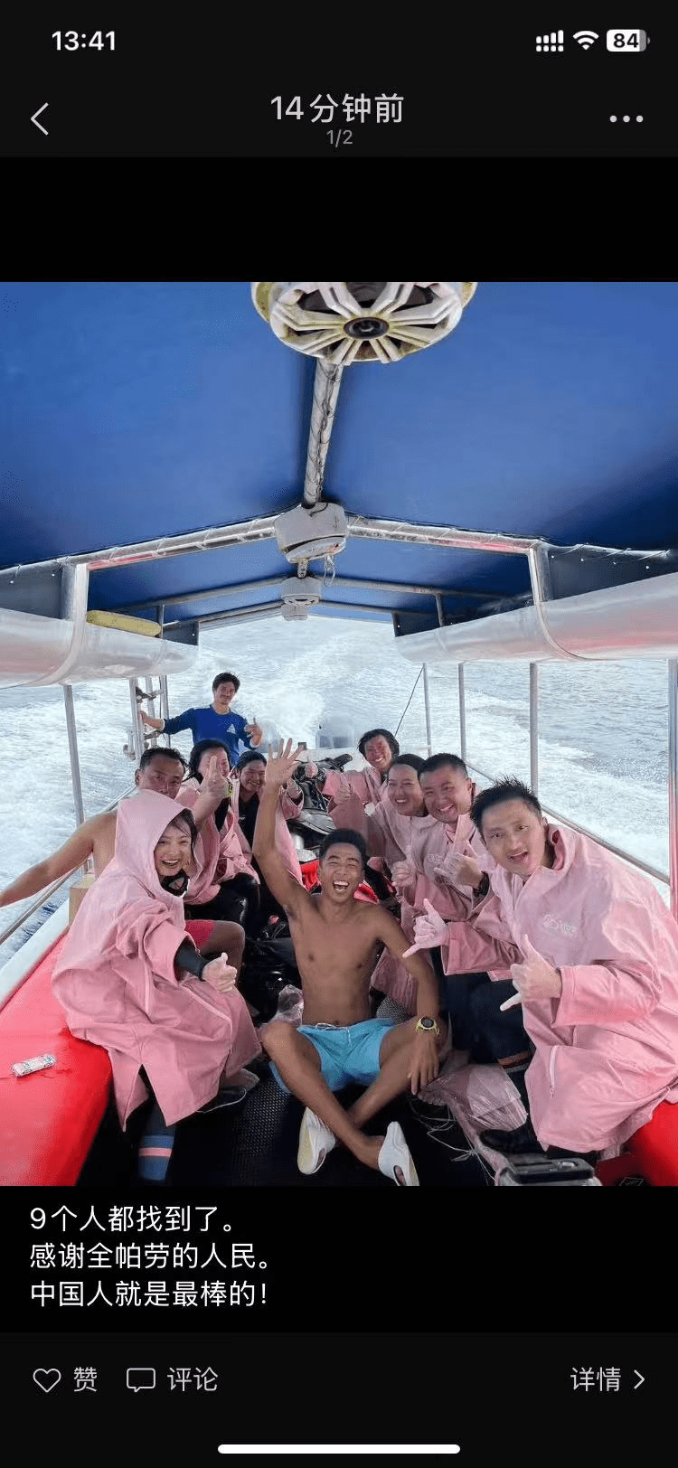 ▲潛水店負責人在朋友圈發照片稱9名中國潛水員全部獲救。