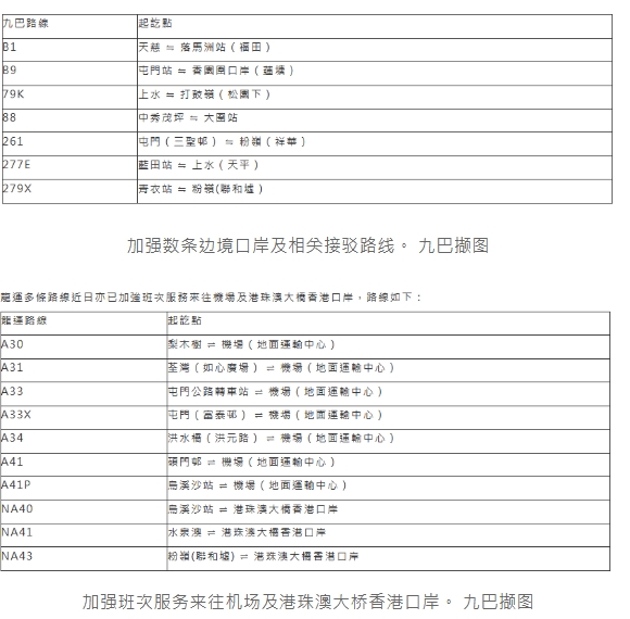 多條巴士路線會加強服務或延長服務時間,包括一條城巴路線、27條九巴路線、兩條嶼巴路線及五條過海巴士路線。