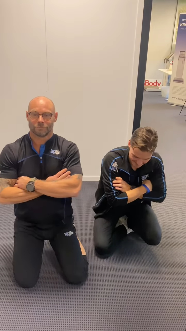 ▲3. 跪在地上。(影片截圖:3ttrening@IG)