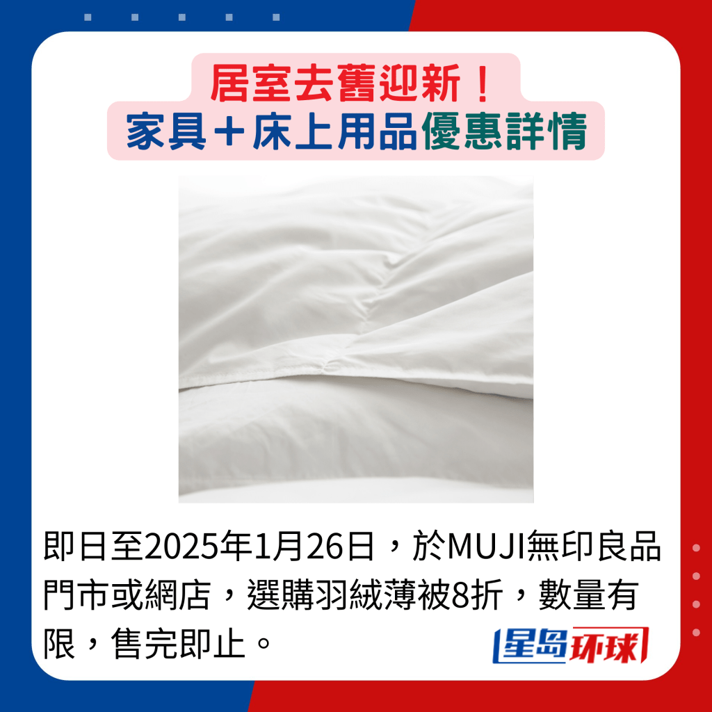 剛過完圣誕,很快又迎來農歷新年!若要為屋企“去舊迎新”添置新的家具或床品等,除要趕及送貨期,更要抓緊各品牌及商戶現正推出的優惠,當中包括不同折扣、送贈品或優惠券,又或賺取倍數積分等,有需要就即刻行動喇!