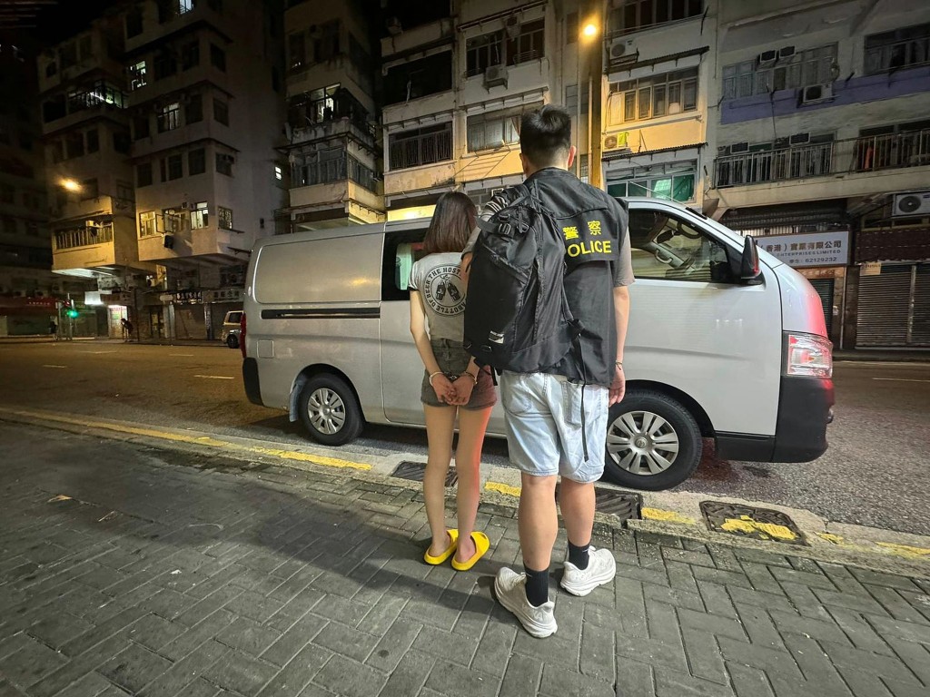 ▲警方拘捕涉嫌販運“太空油”的女子。