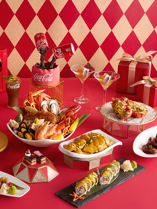 而全新“可口可樂”無限饗樂盛宴自助晚餐,重頭戲包括一系列“可口可樂”主題美饌,如以可樂升華滋味的炆和牛肋條、結合秘制醬汁與可樂滋味制成的創意可樂豉油雞,還有可樂造型的精致香蕉朱古力蛋糕及栗子戚風忌廉蛋糕,以及清爽的小青檸可樂雪葩等。配上即開生蠔、龍蝦、面包蟹、蟹腳等,也有大竹籠蒸海鮮、鐵板彩椒胡椒炒蟹,還有周末限定日本直送即開原條鮮魚、化皮金陵乳豬件,新年期間(2025年1月27日至2月4日)更特設孜然烤羊架、發財蠔豉粥、手工意式雪糕等,每人更可獲贈“可口可樂”隨機精品一個,加送薄荷香橙可樂特飲或鴨屎香檸檬可樂特飲一杯呢!
