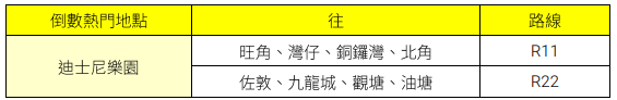 城巴特別為于香港迪士尼樂體驗“跨年倒數時刻”的市民,增設路線R11及R22,助顧客輕鬆往返港島及九龍市區。