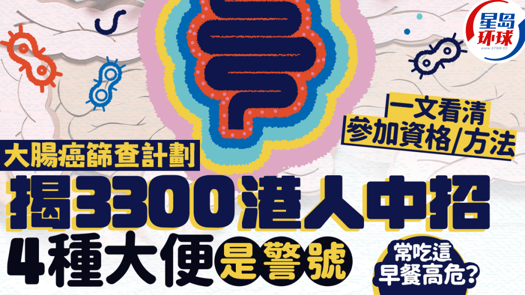 大腸癌為香港第2號致命癌癥,可如何及早發現? 衛生署昨日(12月30日)宣布,1949年至1975年出生的合資格香港居民,由2025年1月1日起符合資格參加政府資助的新一年度的“大腸癌篩查計劃”。 署方表示,計劃自推行以來,已有約3,300人確診大腸癌。 到底何謂合資格人士? 如何參加? 大腸癌有何征兆?