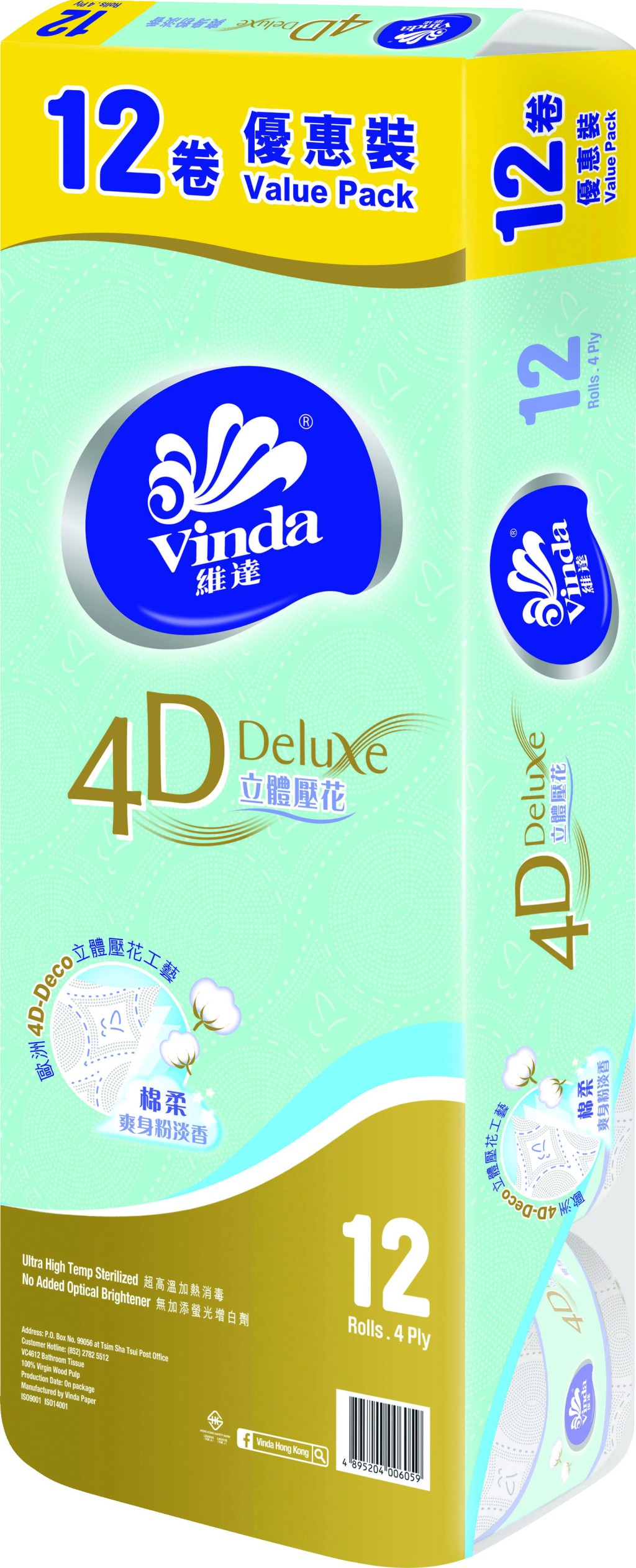 ▲維達4D立體壓花衛生紙(各款) 10+2 加送裝 優惠期:即日至16/1、優惠價:$59.9/2 (標準價: $38 )(圖片來源:惠康)