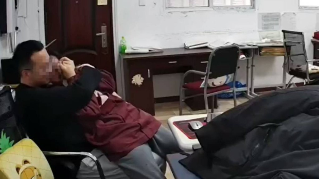據流出的閉路電視影片顯示,男教師本月2日下午及17日晚,在校內辦公室,與一名高中女學生親熱,女生先是趴在男老師身上親吻其頸部,兩人跟著互摟接吻。