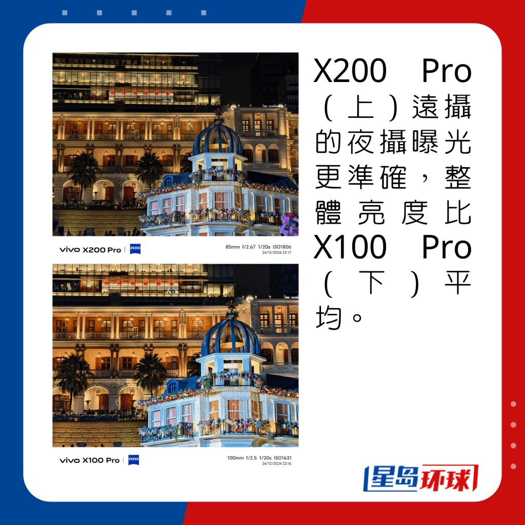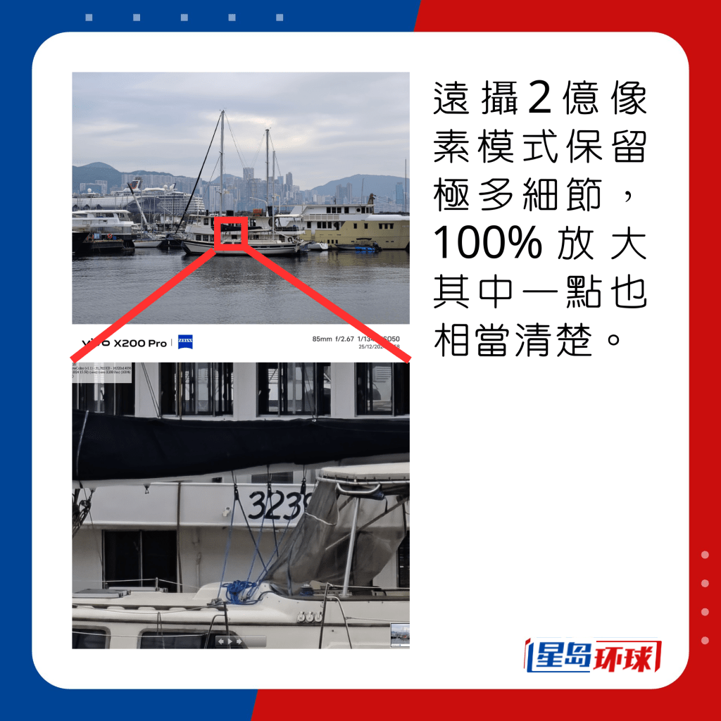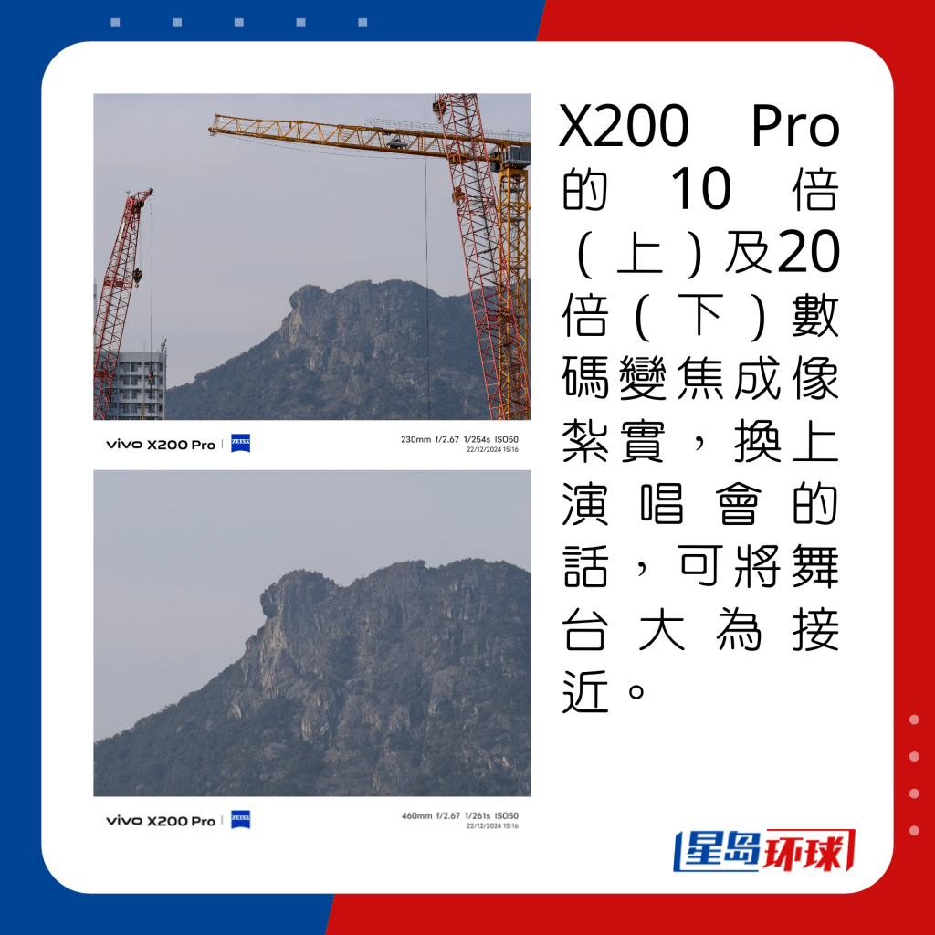 X200 Pro最吸引的地方是換上新蔡司3鏡組合,鑒于X100 Pro的好評,今代成像質素令人期待。雖然50MP主鏡感光元件由上代1吋換成1/1.14吋,APO遠攝光學變焦也由4.3×變成3.7×,但試拍發現,不論廣角、超廣角及遠攝,整體表現超越X100 Pro,色彩更準確,夜攝高光抑制到位,而且大部分情況出動10×、20×變焦也相當扎實,更厲害是遠攝鏡達2億像素之高,可以超高解像度保留豐富細節,即使事后裁相,也可Crop出質素媲美光學變焦的影像,甚至將整個構圖來個二次創作。