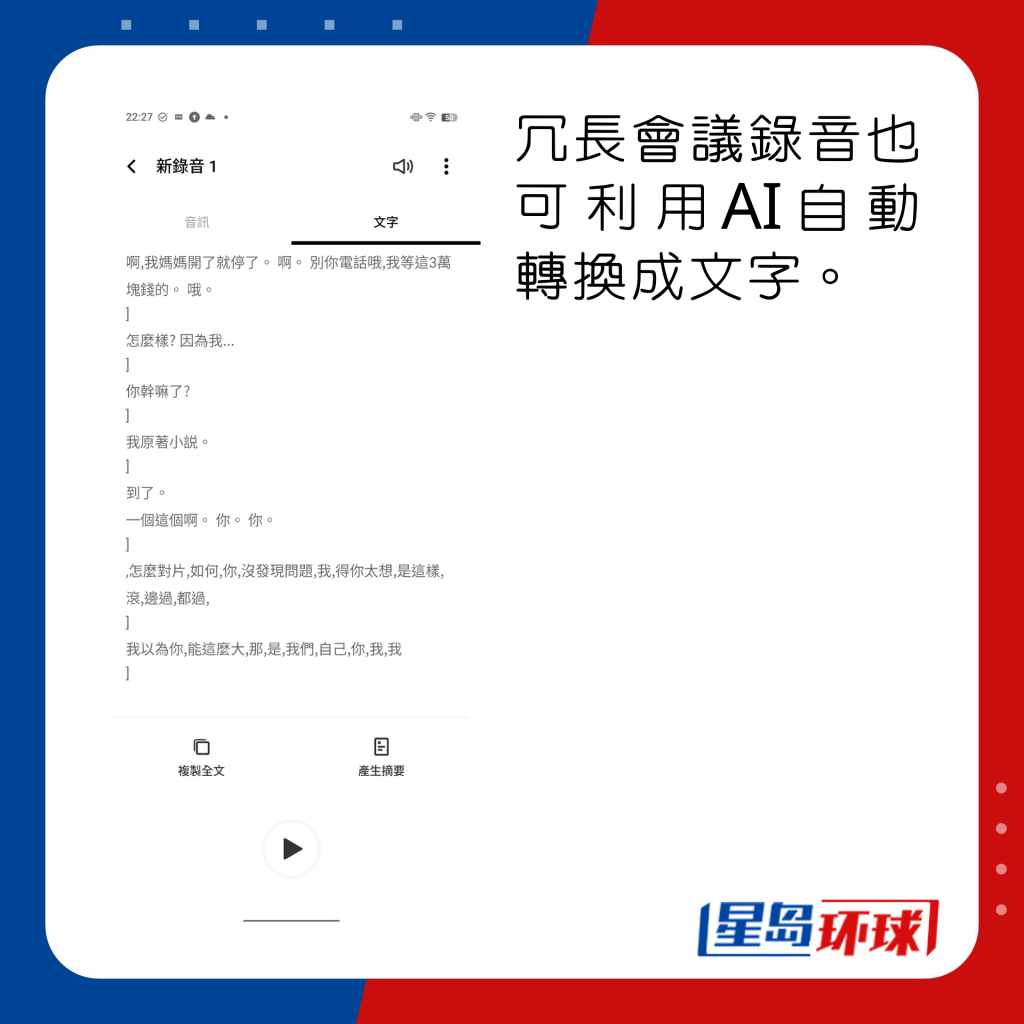 說到效能及續航,X200 Pro是目前市場上的頂流旗艦,處理器為3nm制程的MTK Dimensity 9400,內置16GB RAM及512GB ROM,《安兔兔v10》跑分逾264萬,《Geekbench 6》單核及多核成績分別為2,783及8,106,表現出色,加上擁有6,000mAh電量,打機大半天也不成問題。此外,生成式AI也是一大賣點,除了Google一圈即尋、AI無痕消除、相片修復及全熒幕翻譯,X200 Pro也可為文件自動生成摘要或排版,又或將會議錄音轉錄成文字并總結內容。