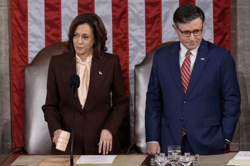 美國國會參眾兩院于當地周一(6日)召開聯席會議,統計并對2024年大選中各州選舉人團計票結果予以認證。會議由參議院議長哈里斯和眾議院議長約翰遜共同主持,且由敗予特朗普的哈里斯主持計票。